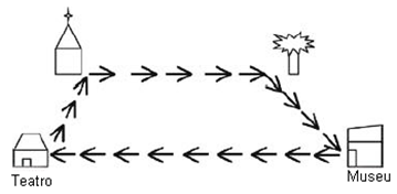 Chegando a uma cidade, Fabiano visitou a igreja local. De lá, ele se dirigiu à pracinha, visitando em seguida o museu e o teatro, retornando finalmente para a igreja. Ao fazer o mapa do seu percurso, Fabiano descobriu que formava um quadrilátero com dois lados paralelos e quatro ângulos diferentes.