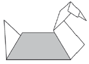 Vera está fazendo um curso de dobradura. Ela fez um cisne usando duas cores de papel.