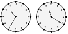 Na escola em que Simone estuda, foi apresentada uma peça teatral sobre a importância da reciclagem de lixo. O relógio a seguir mostra a hora de início e término da peça.
