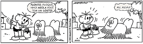 No último quadrinho, a expressão do menino mostra que ele ficou: