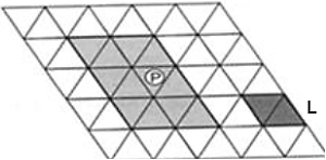 Se a área do losango L, de cor mais escura na figura abaixo, é de 1 cm2, qual é a área do polígono P?