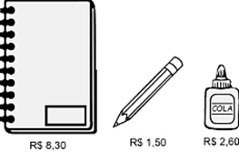 Marina comprou as mercadorias abaixo em uma papelaria.