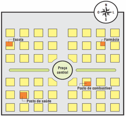 Observe abaixo a representação de parte do mapa de uma cidade planejada.
