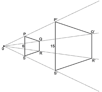 O segmento PS = 6, e o segmento P'S' = 15. A razão entre o lado P'S' e o lado PS é: