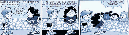 No primeiro quadrinho desse texto, a palavra “FO FO CA” dividida em sílabas sugere que a menina: