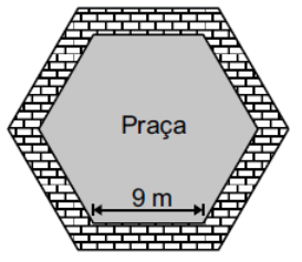 Todos os dias de manhã, Rafael dá três voltas completas em torno de uma praça que tem o formato de um hexágono regular, como mostra o desenho abaixo.