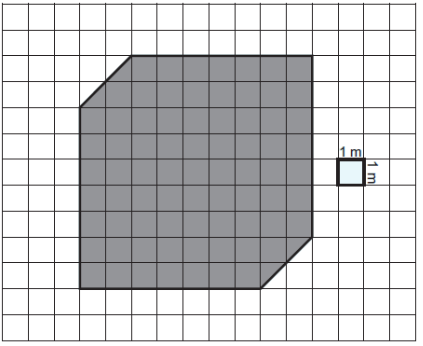 Sérgio resolveu gramar uma área plana que se encontra representada na malha quadriculada abaixo. O preço da grama é R$ 5,00 o metro quadrado.