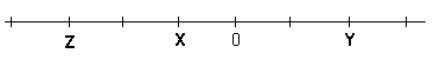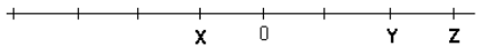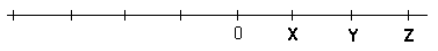 A representação correta das temperaturas registradas nas cidades X, Y e Z, na reta numerada, é: