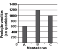 O gráfico que melhor representa a quantidade da produção vendida por essas três montadoras é: