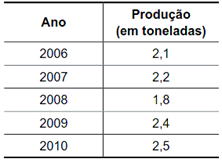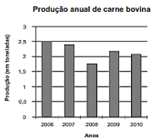 Observe na tabela abaixo, a quantidade de carne bovina produzida por um frigorífico no período de 2006 a 2010.